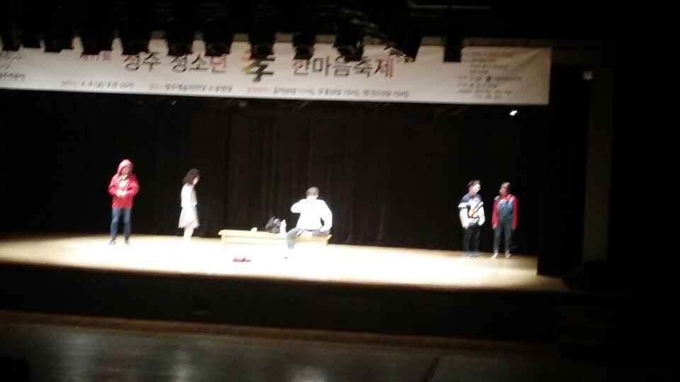 공연장 내부가 너무 어두워서 사진이 선명하게 나오지 않아 아쉽긴 하지만 연극부 학생들의 열정은 정말 빛이 나고 아름다웠습니다.^^ 앞으로 더욱 발전해 나가는 연극부 학생들의 모습 기대하겠습니다.*^^*