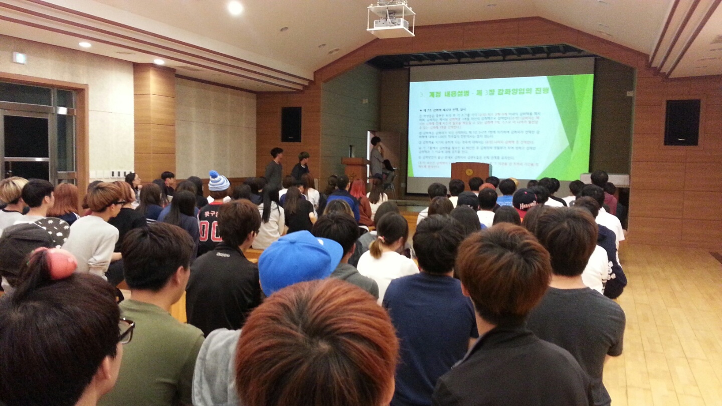 잘못을 한 학생이 진정으로 자신의 잘못을 반성하고 더 좋은 쪽으로 변화할 수 있도록 돕자는 취지로 만들어진 제도인 감화양업의 감화법을 18대 학생회 주관으로 일부 개정하여 선포하는 의미있는 시간을 가졌습니다.*^^*