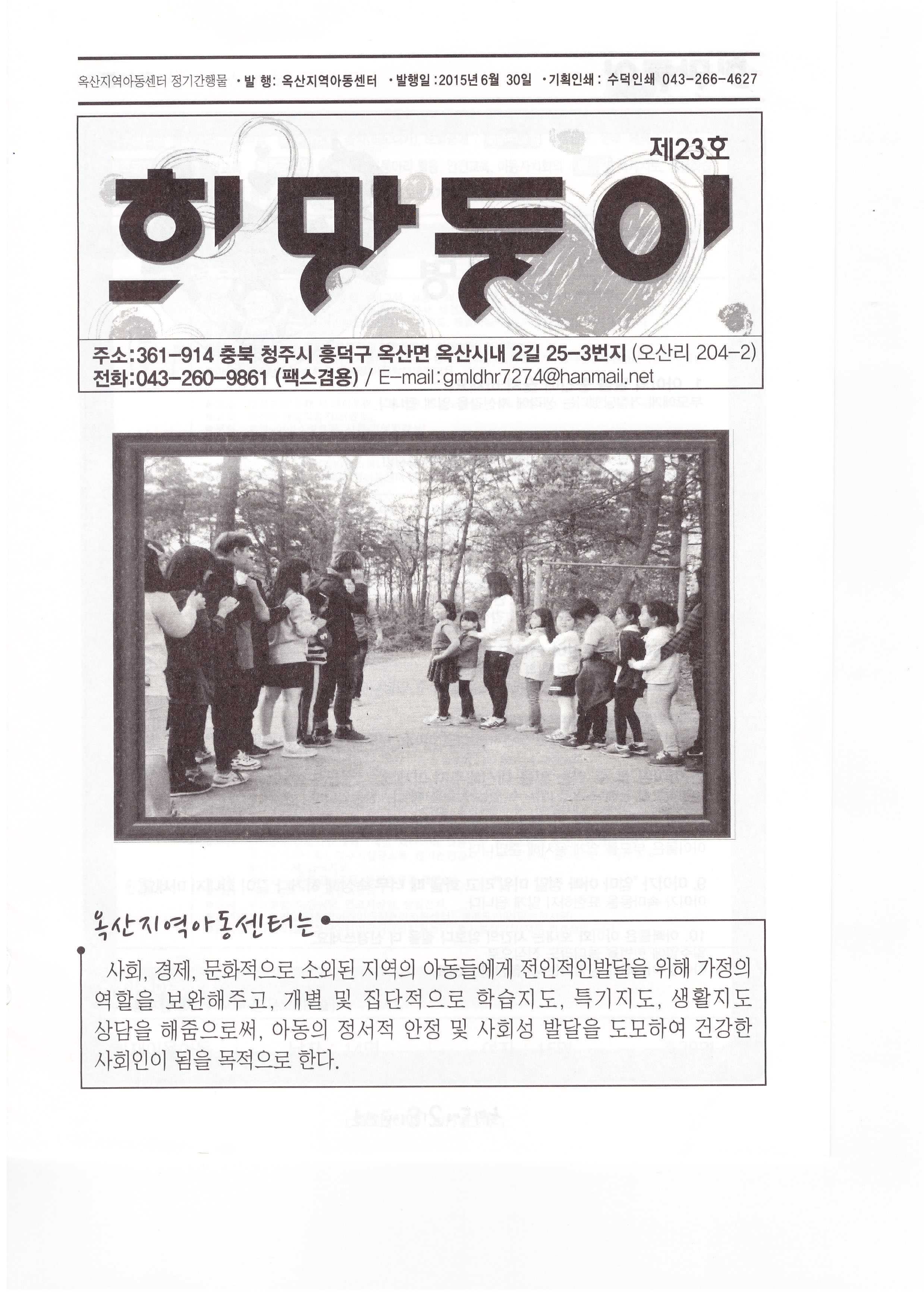 옥산지역아동센터 소식지에 우리학교 학생들이 나왔어요~!