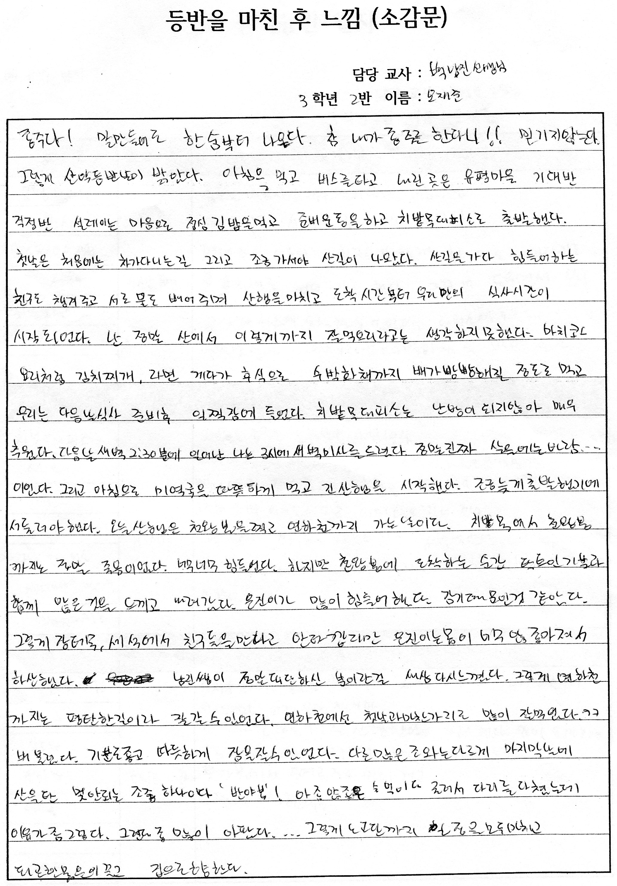 학생들이 쓴 있는 그대로를 싣기 위해 스캔하여 그림파일로 탑재하게 되었음을 알려드리며