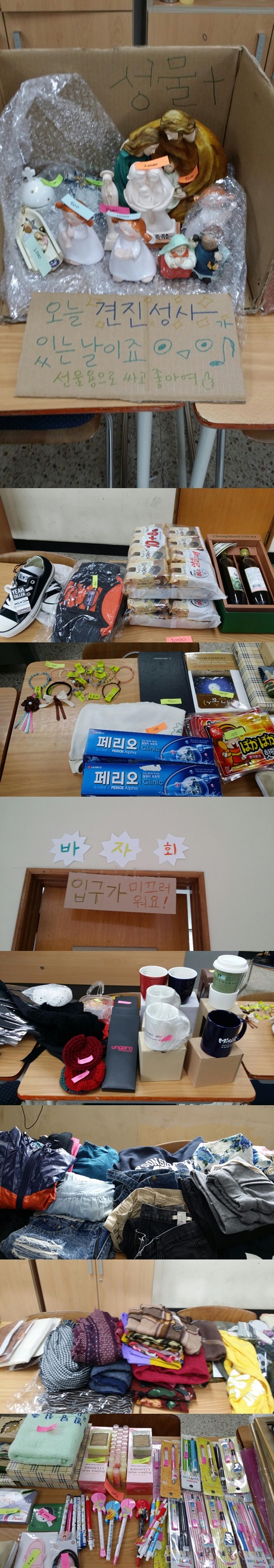 훈만어머님의 성물,태균어머님의 학용품,승호어머님의 립밤세트,수정어머님의 필기용품 및 화장품,경은어머님의 양말 및 의류,민재 어머님의 스카프,승우어머님의 김세트,성빈어머님의 매실액기스,수림어머님의 성물, 혜준이모님의 지갑, 지원어머님의 컵세트, 은유 어머님의 치약세트와 수건세트 등등 기부해주셨습니다.