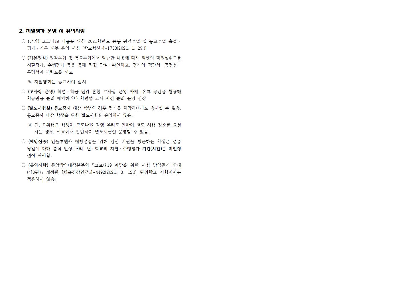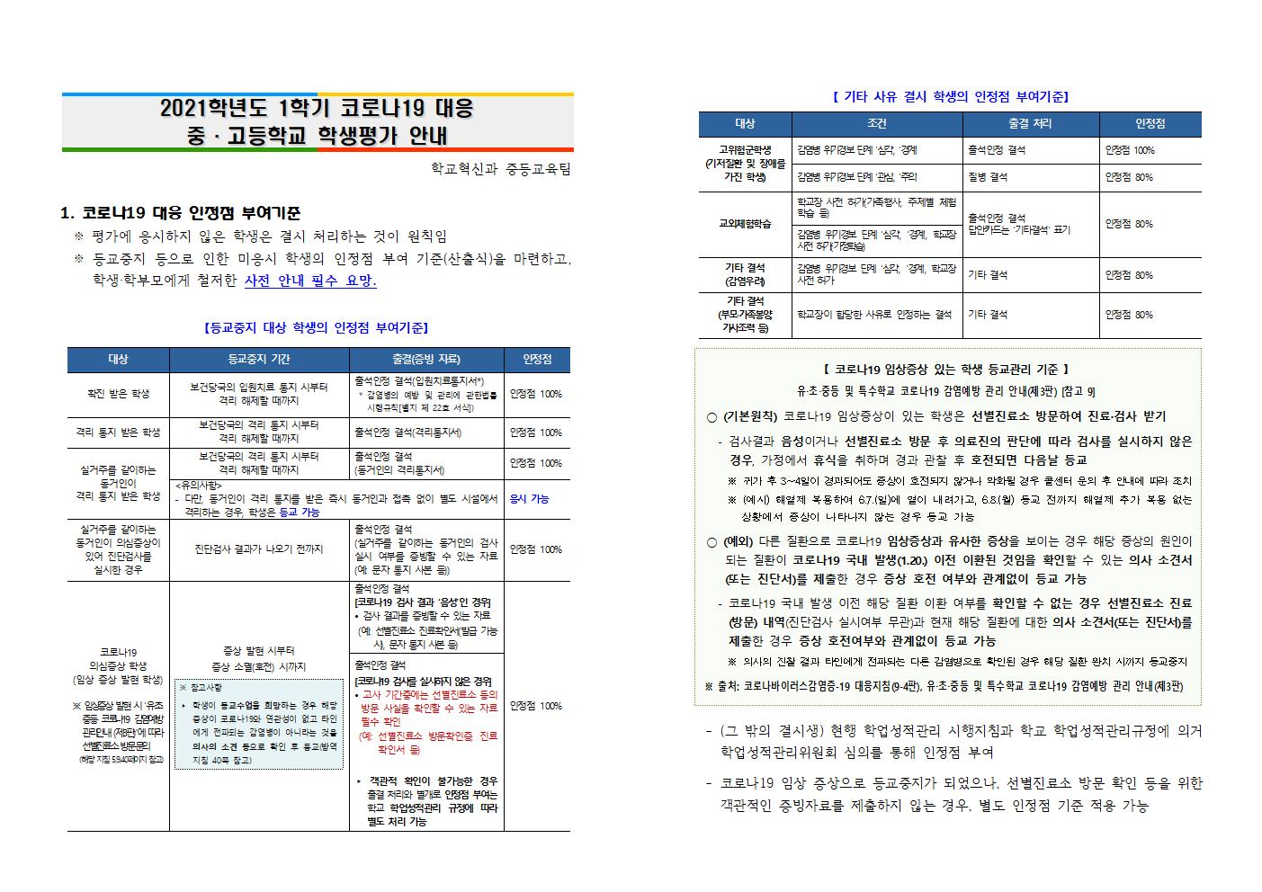 2021학년도 1학기 코로나19 대응 학생평가 안내
