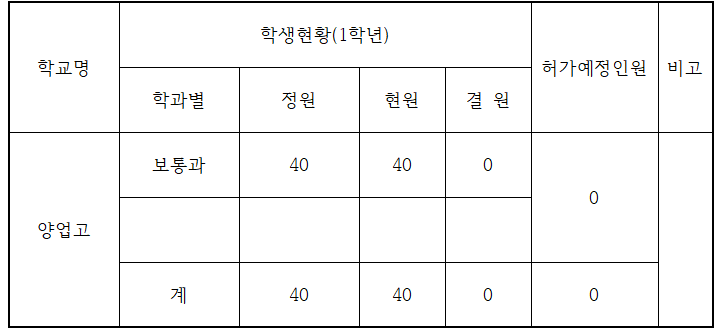 2020학년 상반기 일반고 특성화고 간 진로변경 전입학 허가 예정 인원 공지