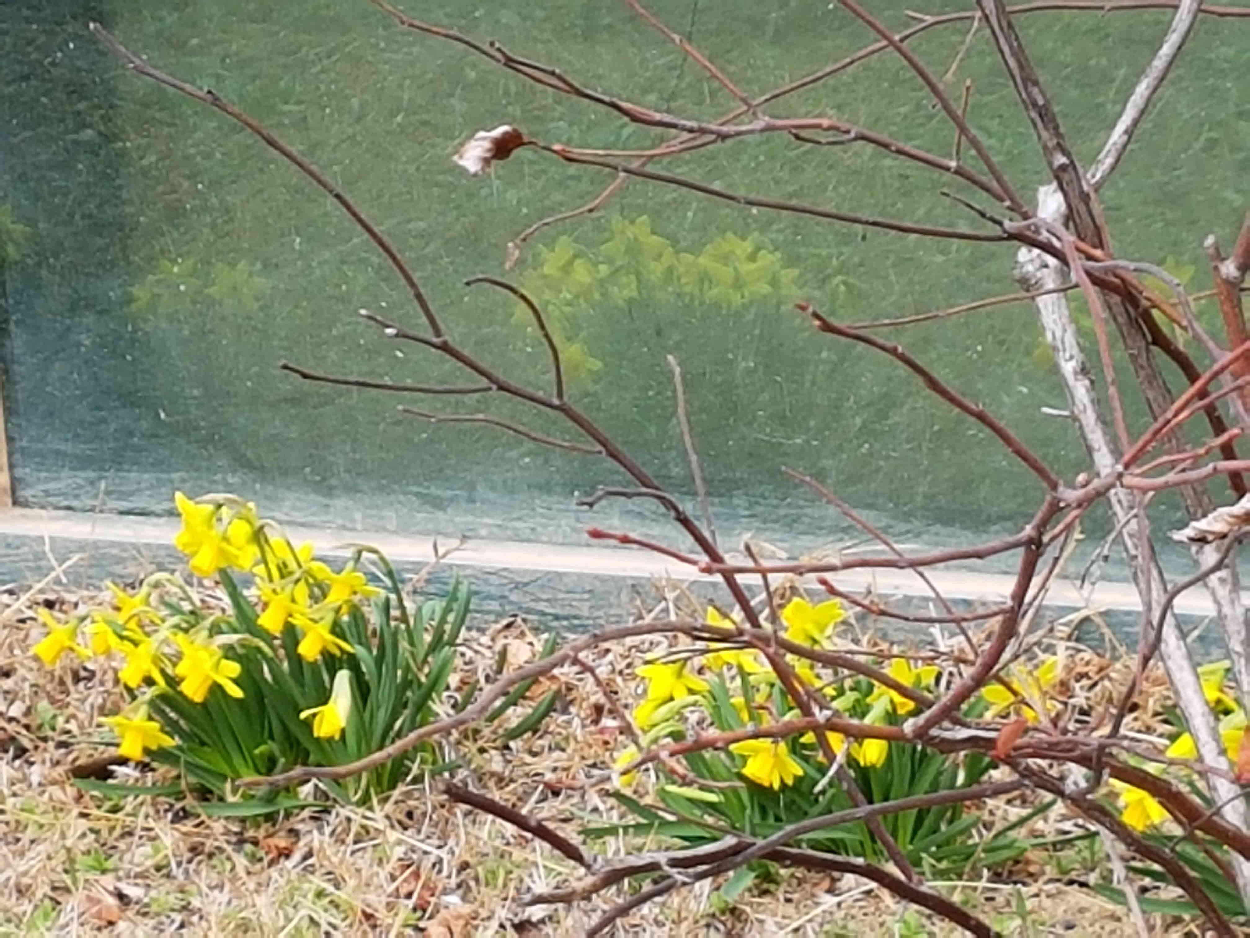 봄의 전령사 노란 수선화가 담장아래 졸졸이 피었습니다.