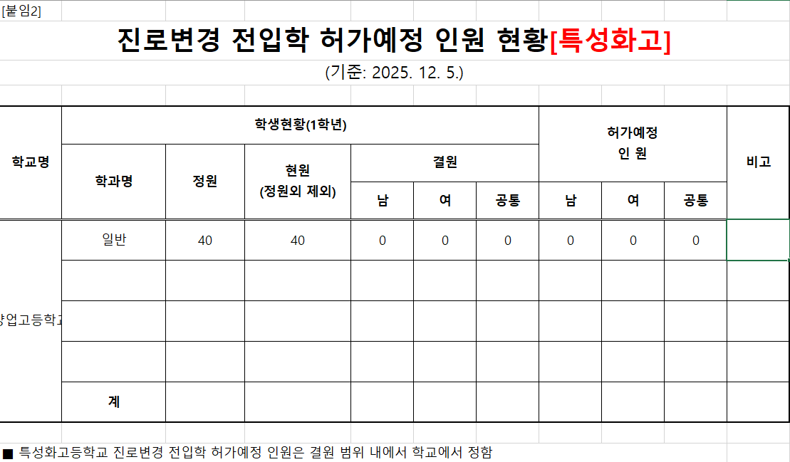 2025. 하반기 일반고 및 특성화고 간 진로변경 전입학제 시행 계획을 다음과 같이 알립니다.