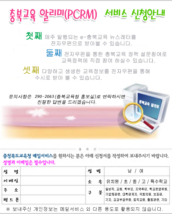 충북교육 알리미( PCRM) 서비스 신청안내