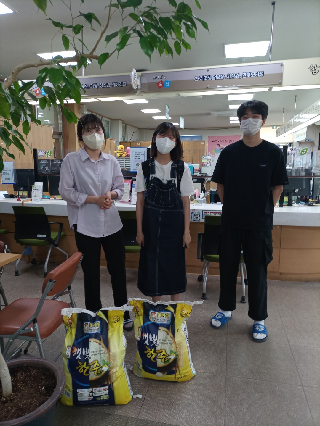 지난 4월에 특성화교과의 일환으로 시행된 봉사활동에서 우리 학생들은 조금 서툴지만 봉사정신과 열정으로 열심히 활동을 하여 농가분들로 부터 많은 칭찬과 감사 인사를 받았습니다. 특히, 강내면에서 농촌봉사활동을 했었던 팀에게는 농가분이 고마움의 뜻으로 쌀(20 kg) 두 포대나 주셨습니다.~ 우리 학생들은 봉사활동의 댓가로 받은 것인 만큼 좀더 의미있는 곳에 쓰여질 수 있도록 옥산면 주민센터에 기부하였습니다. 모든 학생들이 다 갈 수 없어서 2학년 안연서, 1학년 이정호 학생이 대표로 전달해드렸습니다~ 옥산면 사회복지 담당관께서는 거듭 감사하다는 말씀을 하시면서 옥산면에 거주하는 독거노인이나 불우 이웃 등 어려운 환경에 처해있는 분들께 잘 전해드리겠다고 하셨습니다.~^^