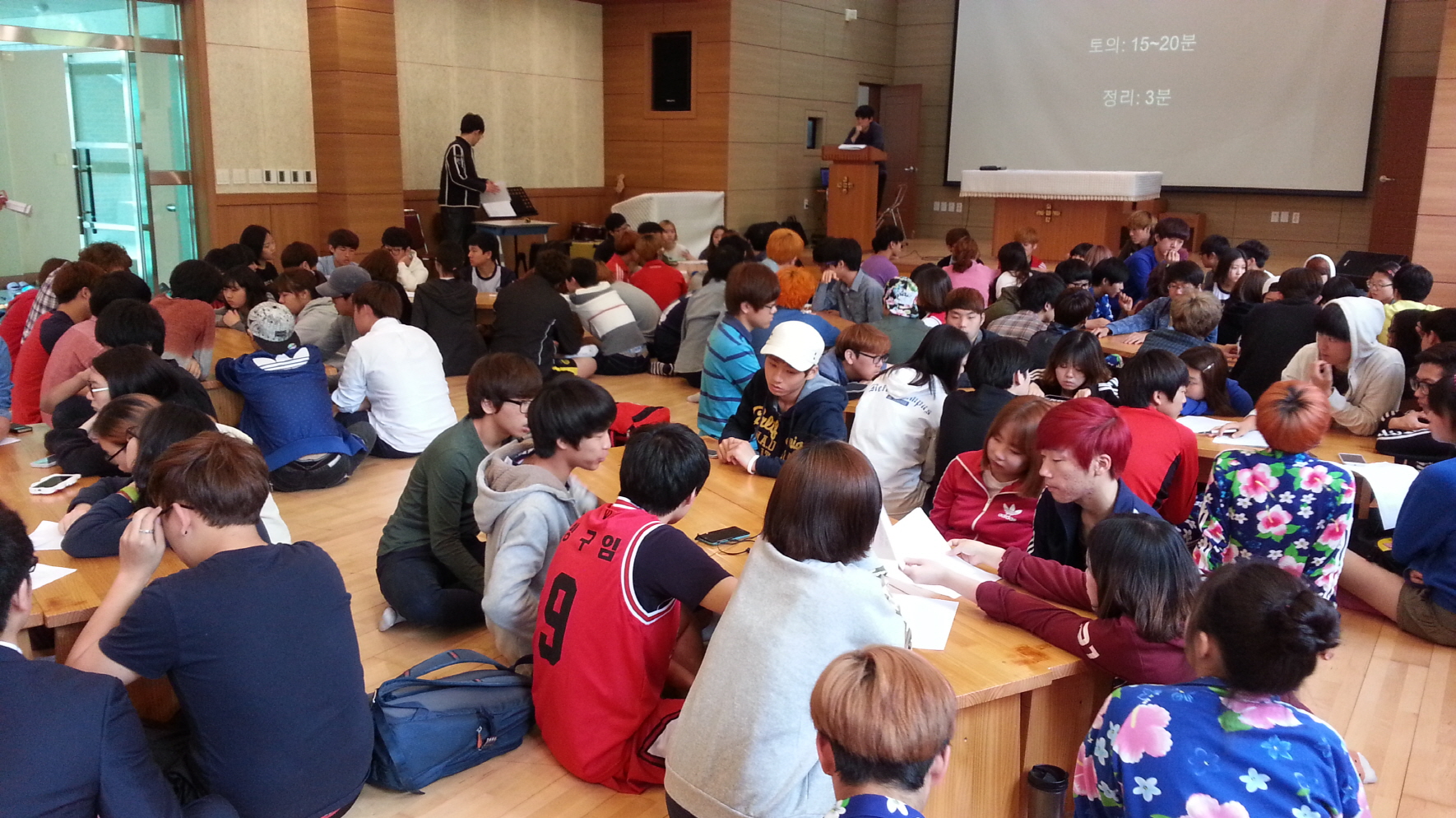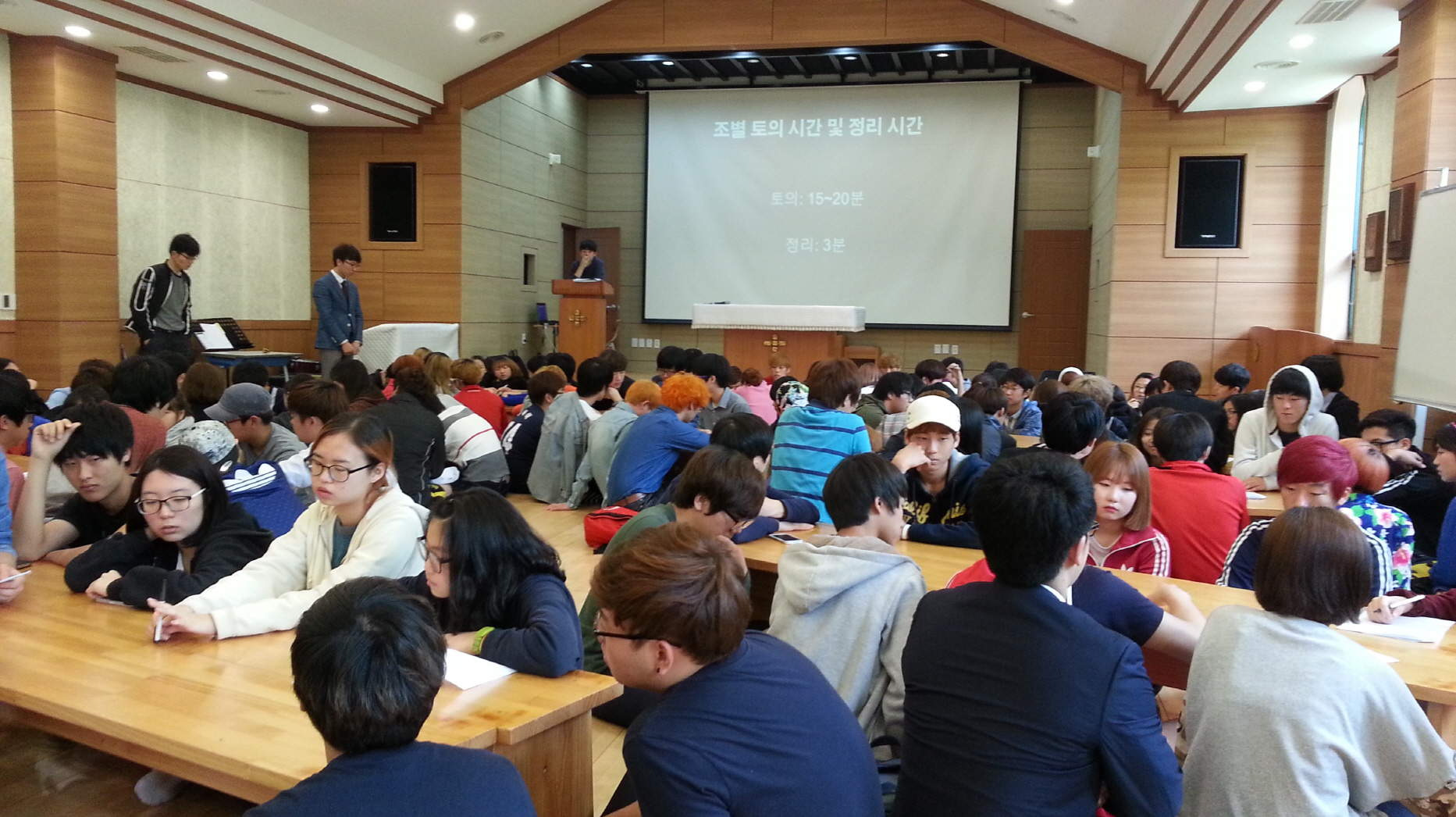 2014. 5월 16일 금요일 4교시 학생자치회 주관으로 전교생 전체회의가 토마스관에서