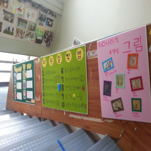 함께 센터 입구 계단에 멋지게 게시판을 만들어 환경미화를 해주었고,