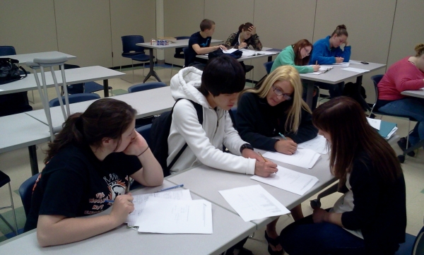 Eastern Maine Community College 신지수 조교가 미국학생들에게 수학을 지도하는 모습