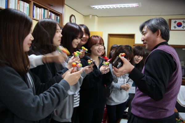 우리나라에서 제일 이쁜 여학생들과 여직원들에게 사탕을 주셨어요.