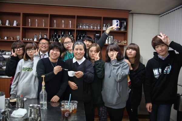학생들은 고가의 기계를 이용하여 에스프레소를 뽑는 실습을 하더니 ..