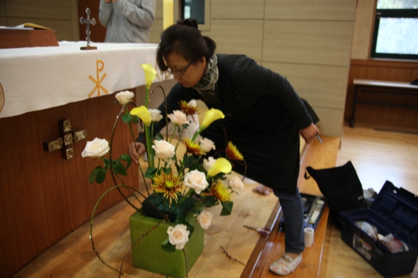오늘 오후 5시 수능 미사를 위한 제대 꽃꽂이~