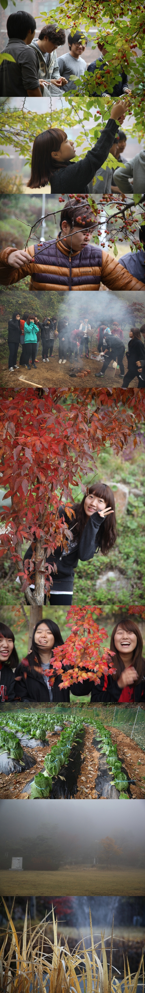 한쪽에서는 꽃사과 열매 걷이를 하고 있는 친구들~