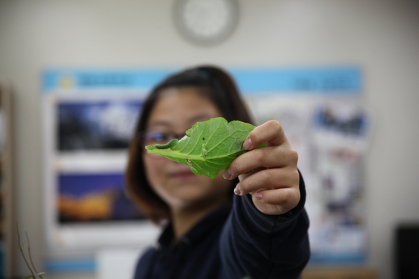 노작시간에 밭에 올라간 아이들이 배추벌레를 잡아가지고 와서 들고 다닌다.