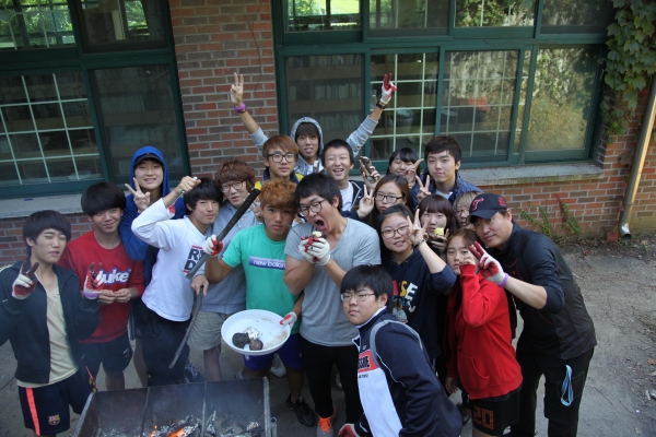 그곳의 밭에서 감자, 고구마, 밤을 조금 얻어와서 오늘 학생들이 구워 먹었다.