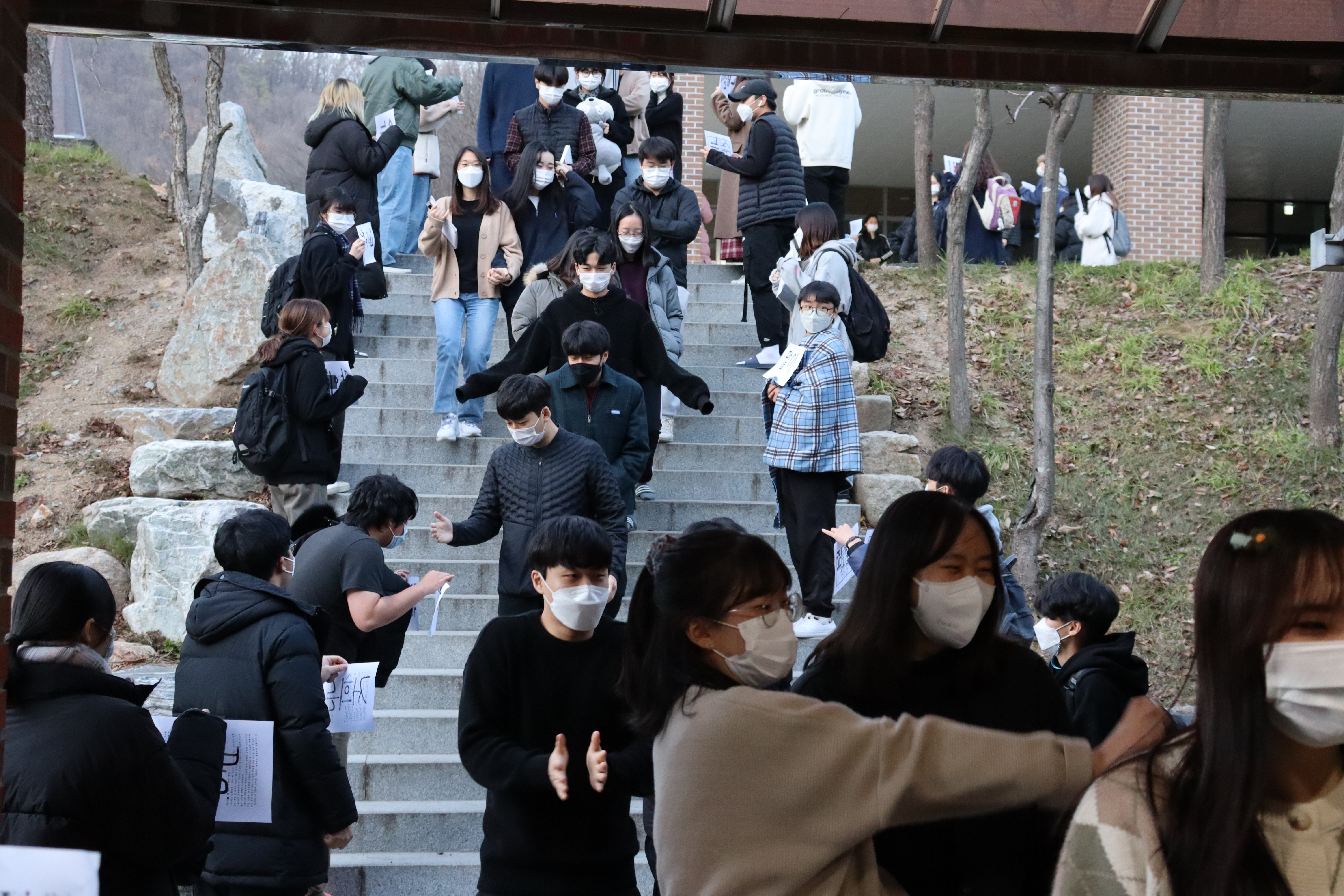 선배들의 수능시험을 응원하기 위해 후배들이 준비한 선물과 축복의 노래선물로