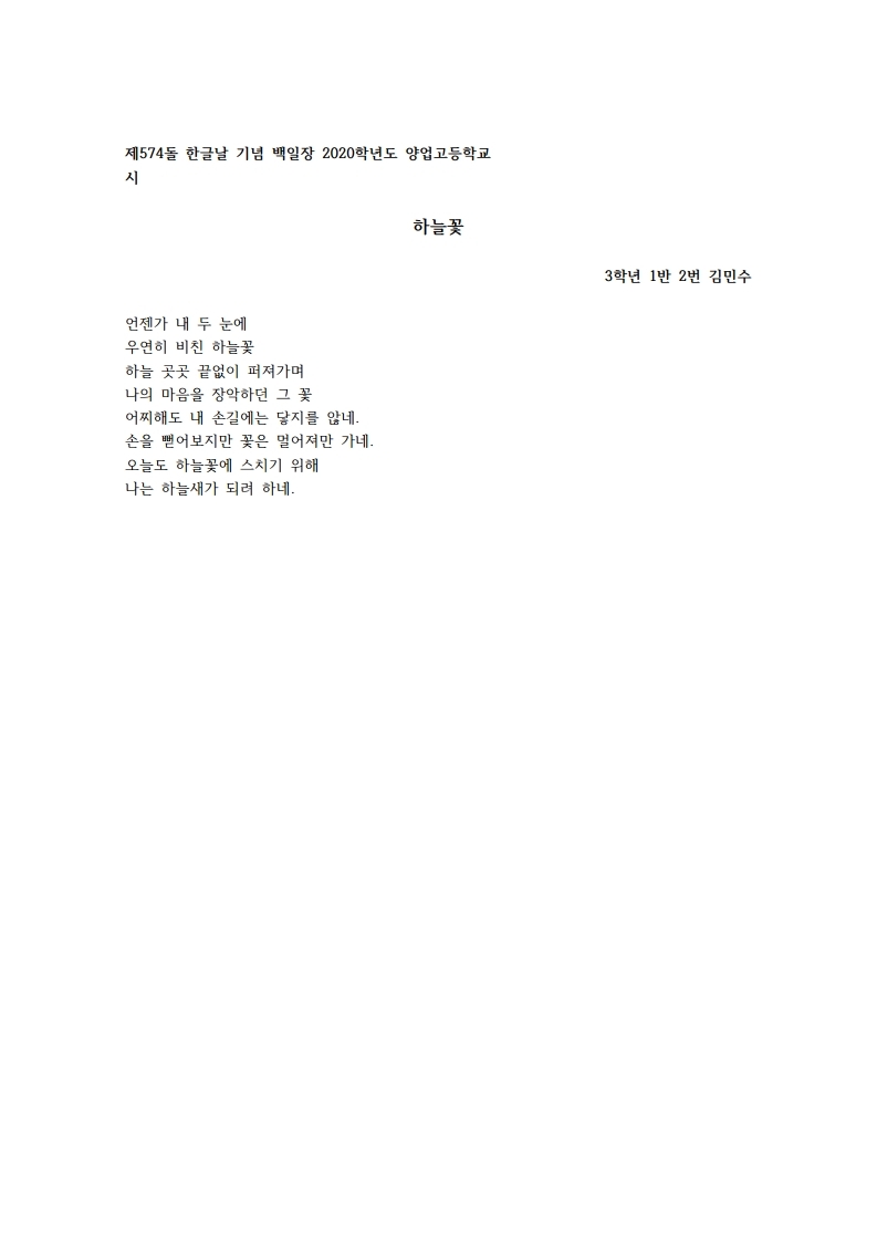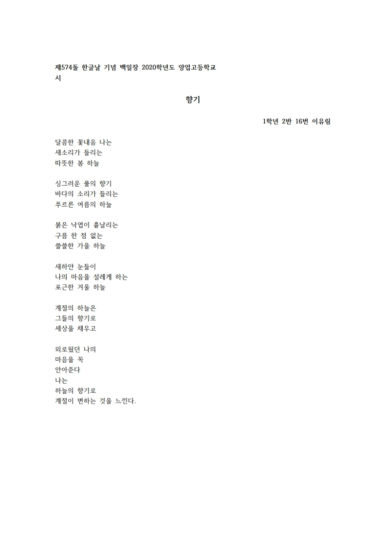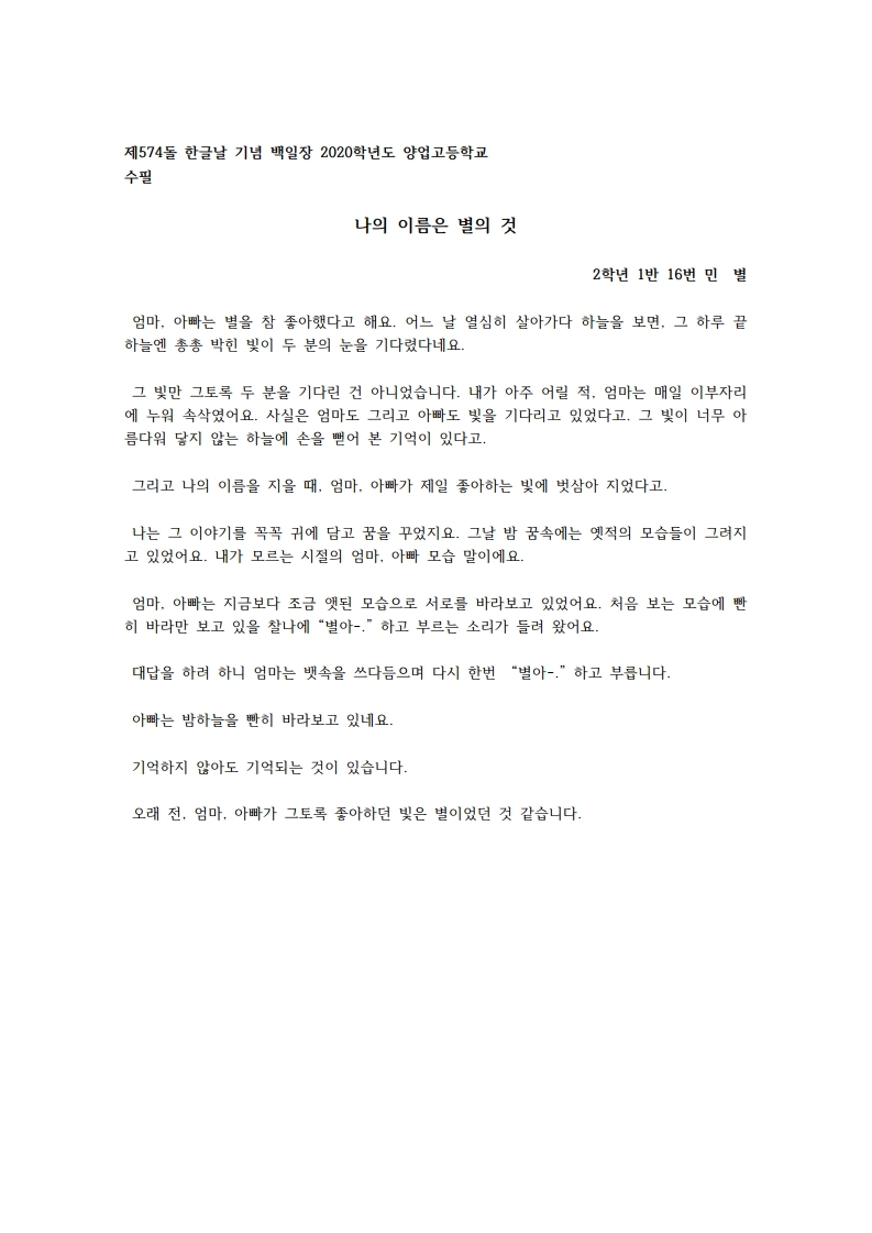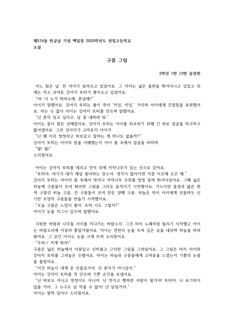 양업학생들의 수상작 많이 읽어주시고 격려 부탁드립니다^^