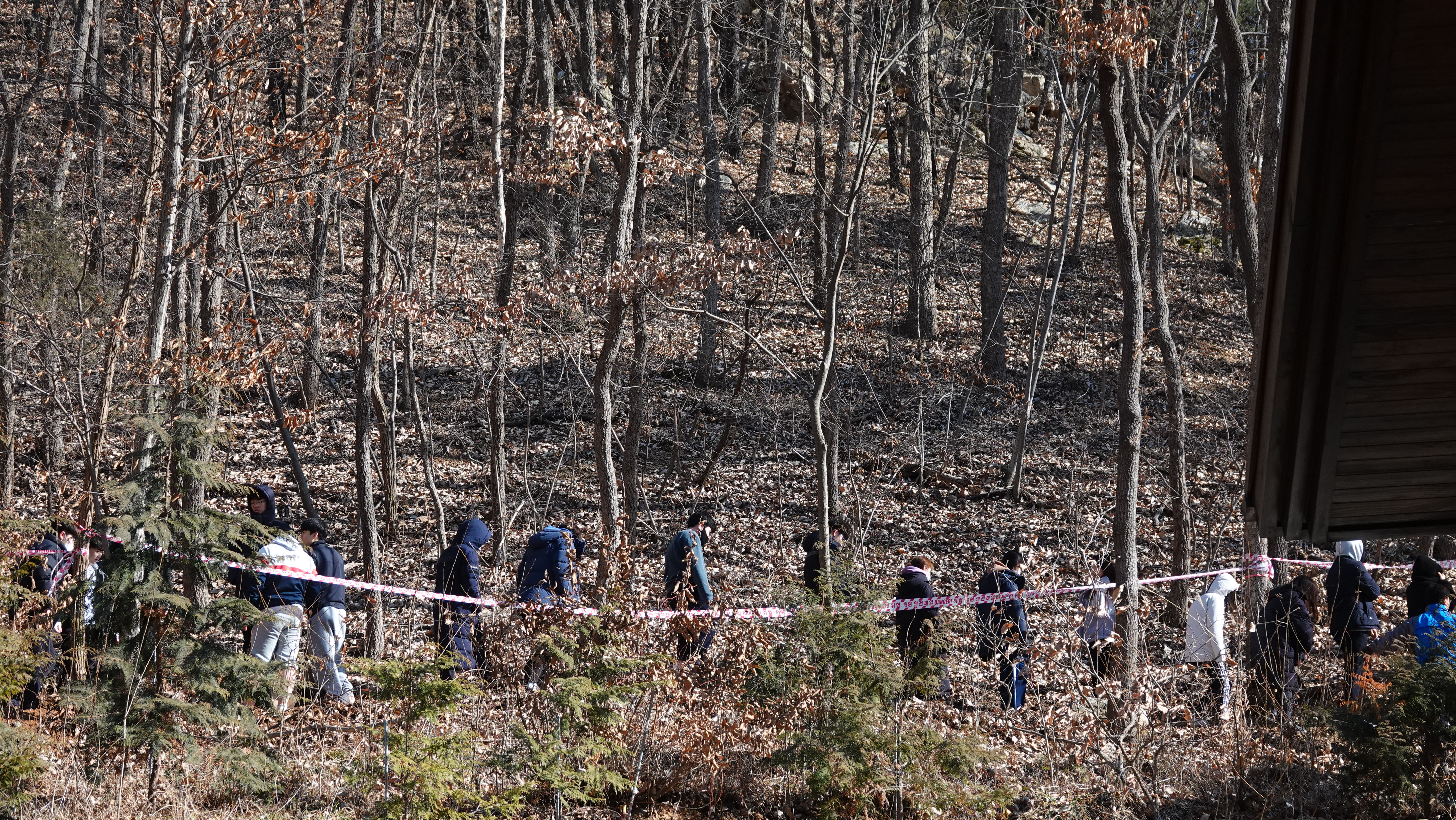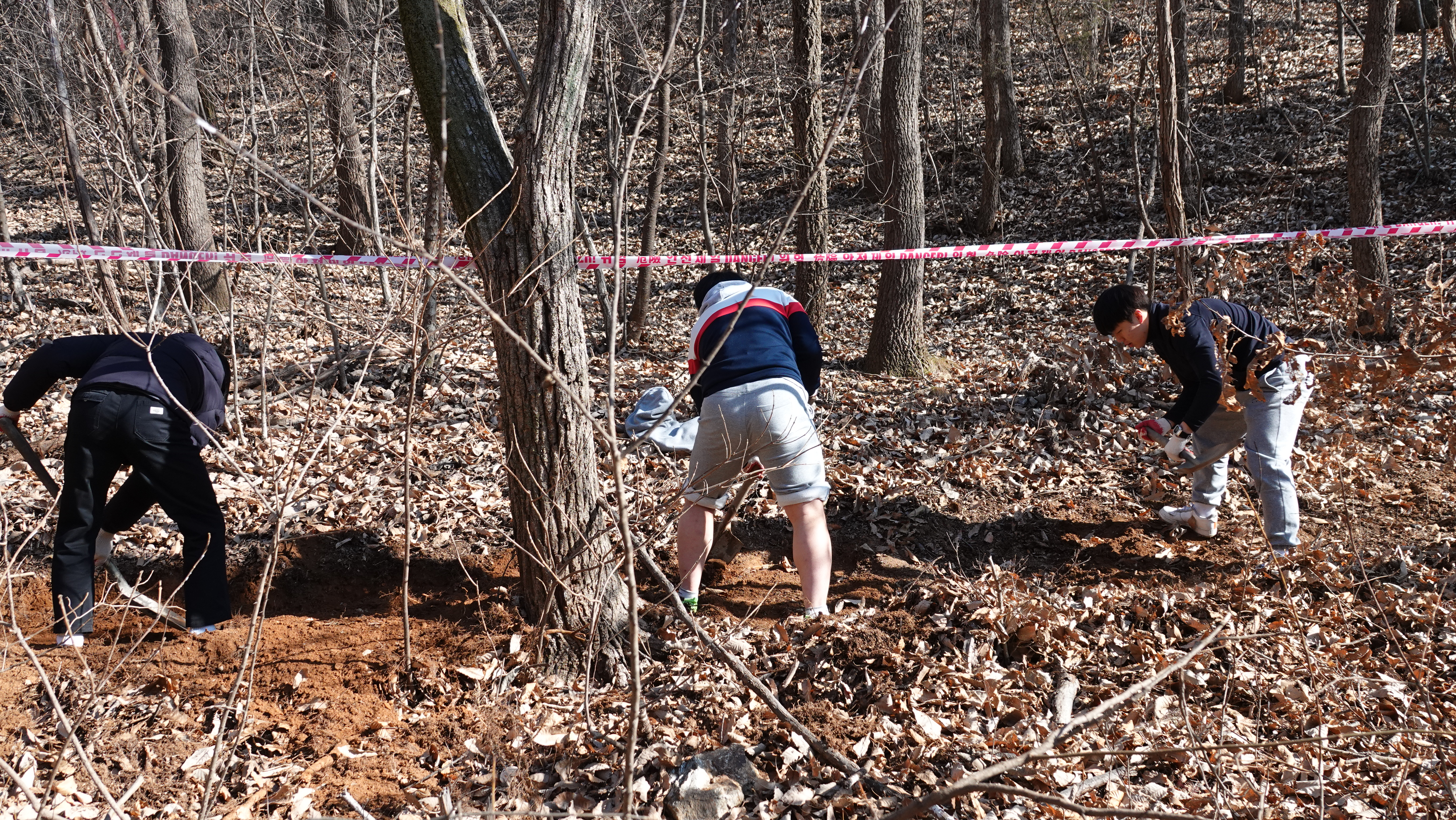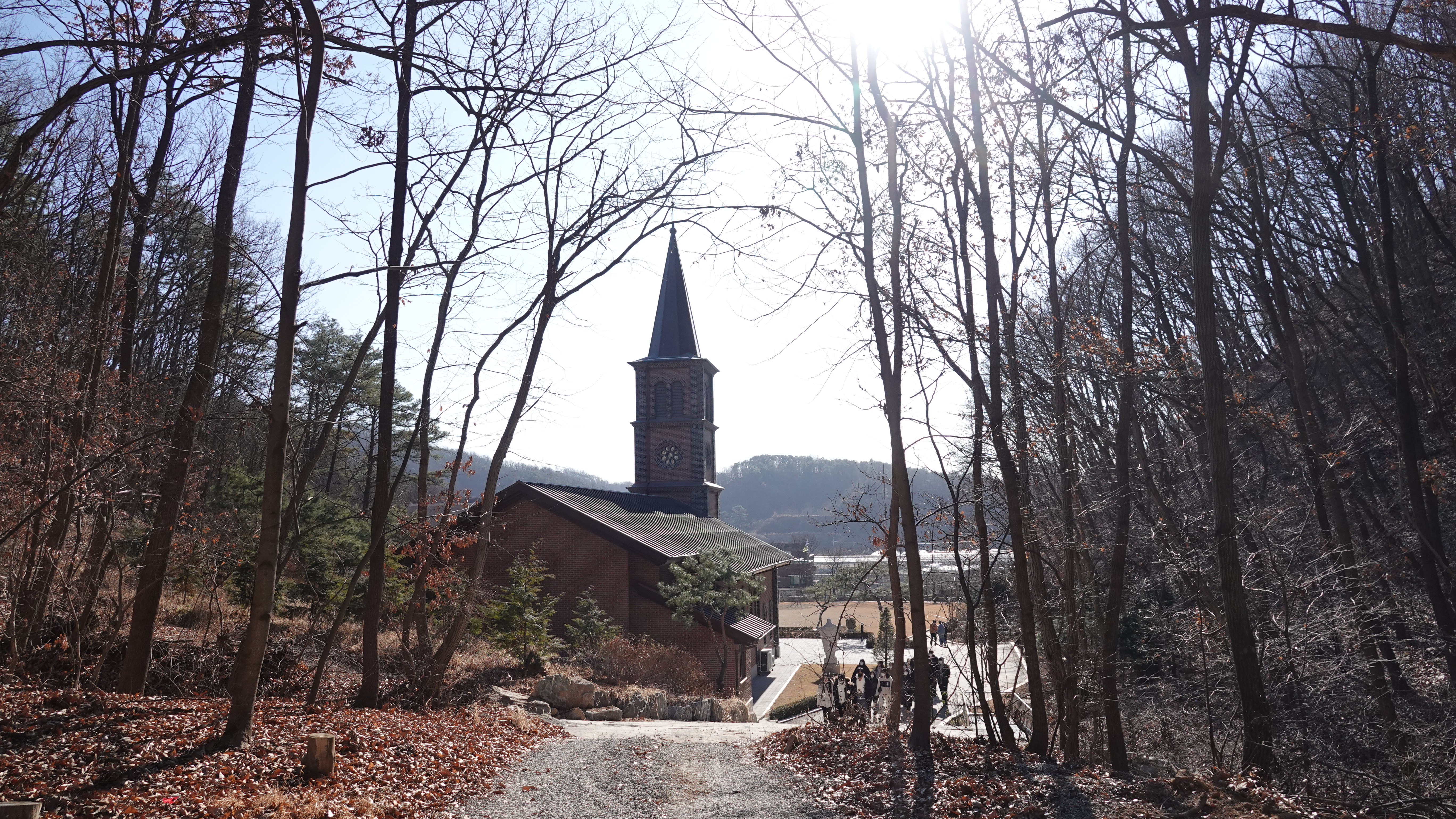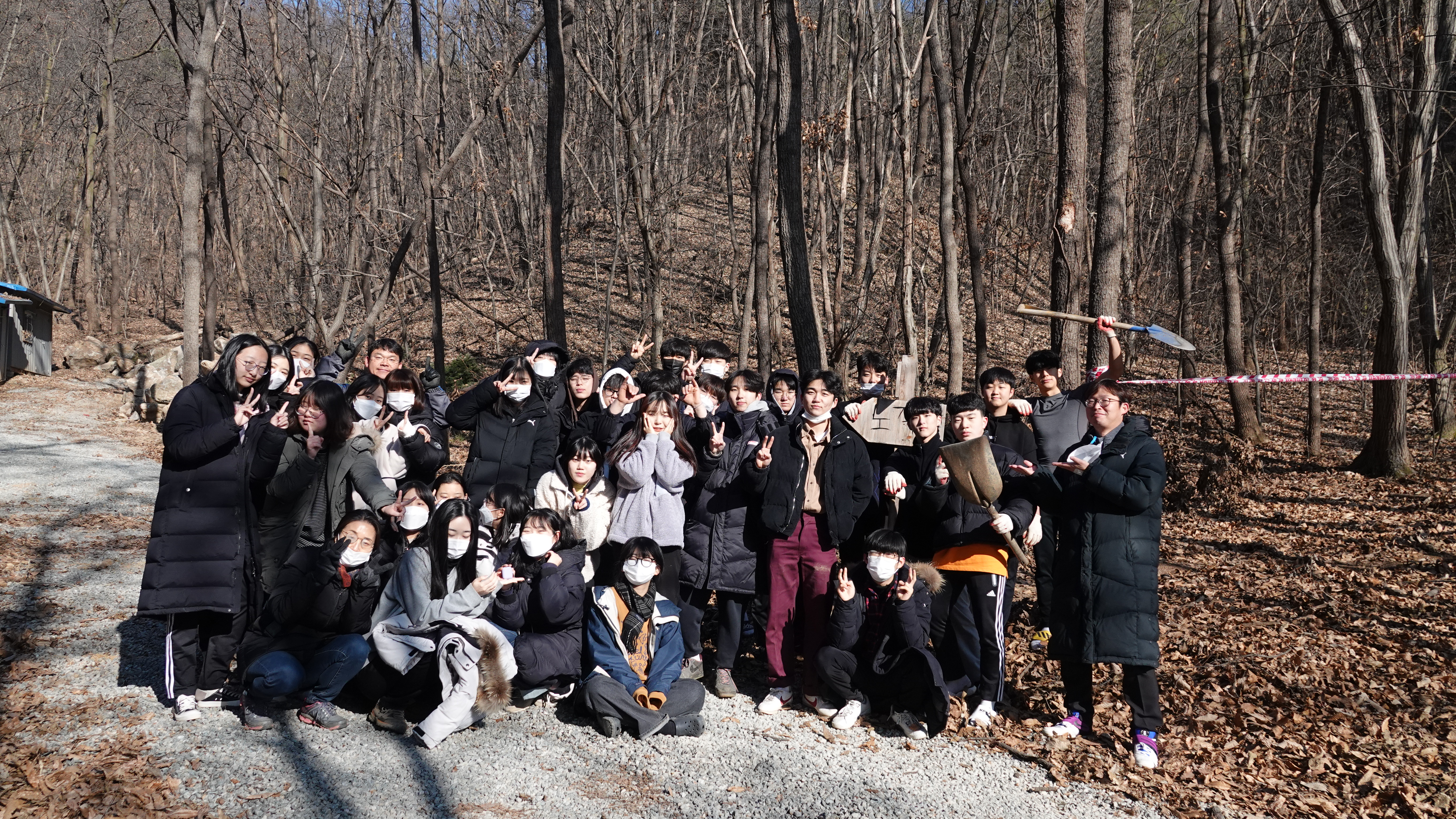 추운 겨울날, 졸업을 앞둔 21기 선배들이 고생해서 만든 오솔길을 내년 봄에 양업 후배들이