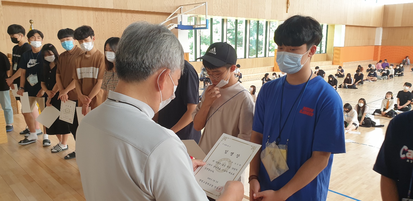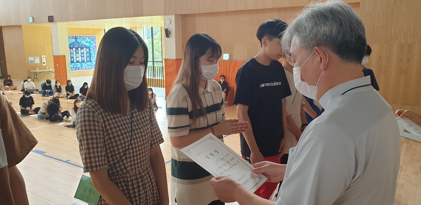 코로나19 로 인해 수여식이 다소 늦어졌지만, 새로 선출된 각반 학급반장과 기숙사 홈장 친구들이
