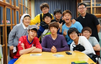 산 홈 친구들의 홈미사 후 행복한 모습입니다.