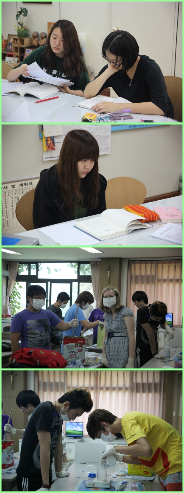 과학실에서 빨래비누를 만들고 있는 친구들~
