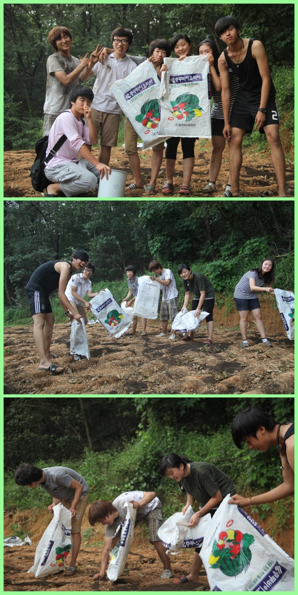 2학년 학생들이 자발적으로 밭에 비료를 뿌린다며 나섰답니다~