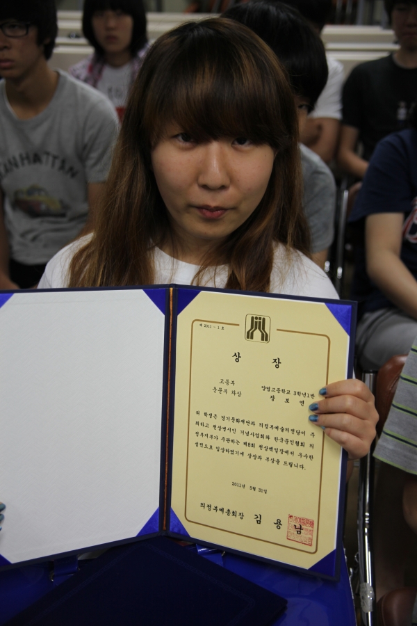 의정부 예총 회장상을 3학년 장보연 학생이 받음