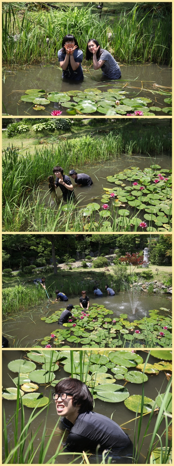 연못에 있는 풀을 뽑기 위해 자발적으로 연못에 퐁당~빠졌어요ㅎㅎ