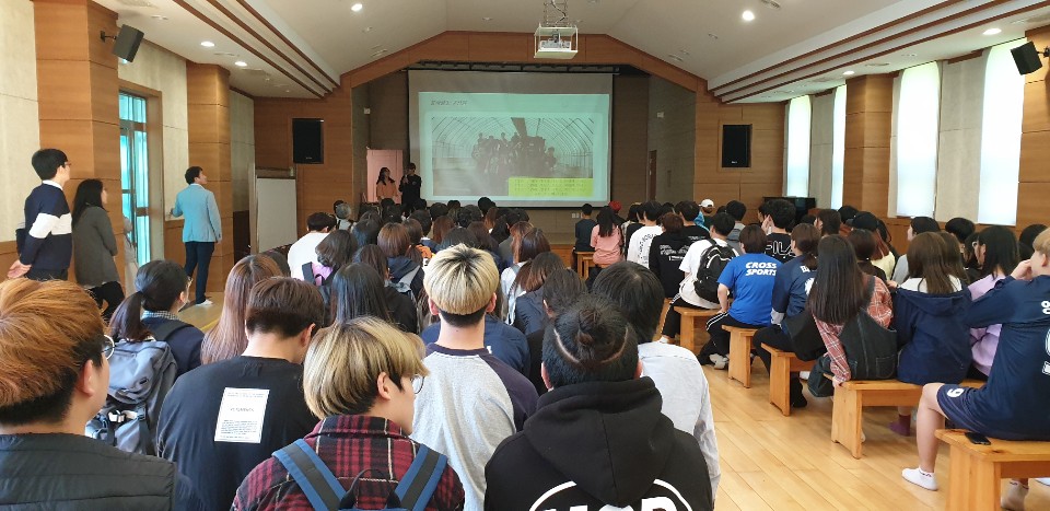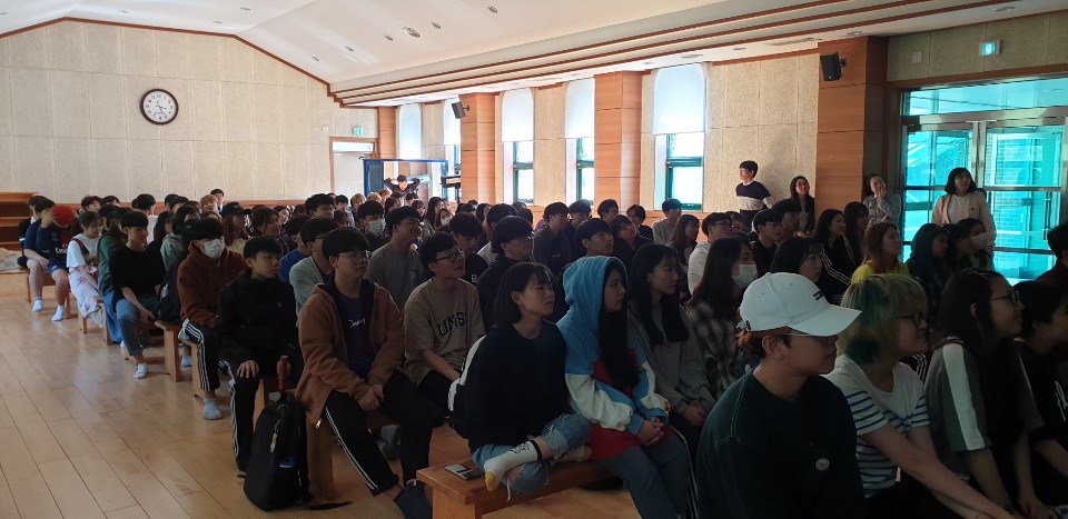 5월 7일(화) 7교시는 양업고 전교생이 토마스관에 모여 봉사활동 나눔 평가회를 실시하였습니다.