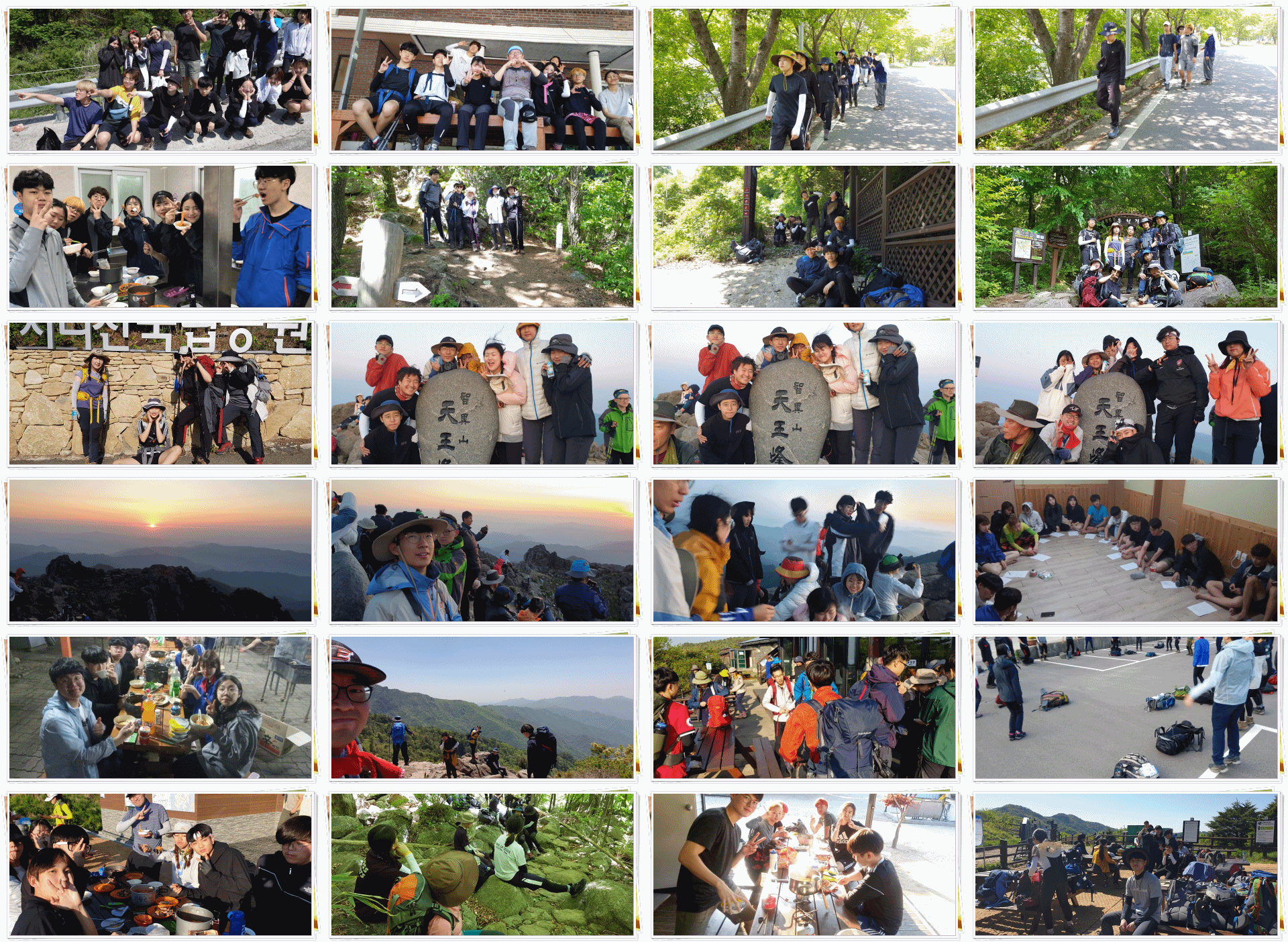 5월 22~24일, 양업고 특성화 교육 활동 중 하나인 지리산 산악등반이 진행되었습니다. 총 14의 팀으로 편성되어 본인의 난이도와 본인의 선택에 따라 스스로 선택한 팀에 소속되어 등반을 시작했습니다. 신부님의 말씀을 듣고 3개의 버스에 나누어 탑승한 후 출발했습니다.