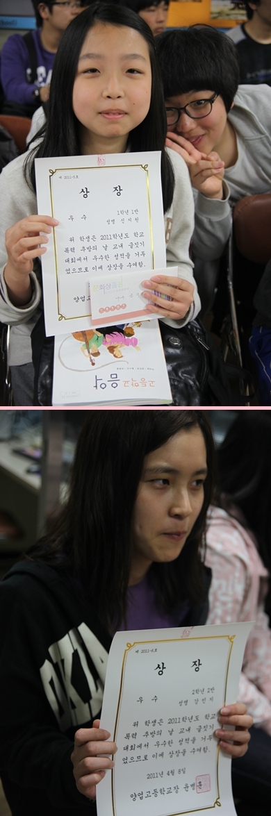학교폭력 추방의 날 교내 글짓기대회 우수상