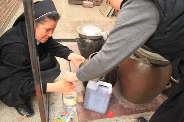 가밀봉 수녀님이 학교식당에서 쓰일 매실엑기스를