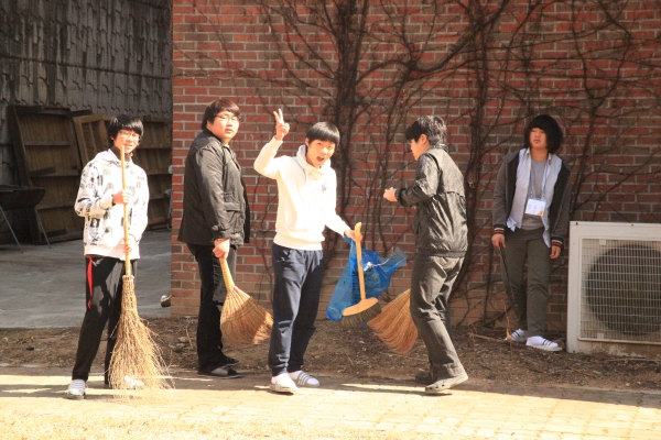 교내 청결에 힘쓰는 이쁜이 1학년들 ㅎㅎ