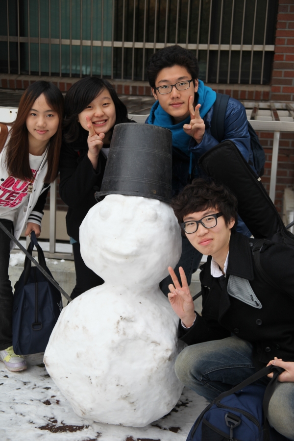 눈사람을 만든 학생과 사진 찍히는 학생은 다름~