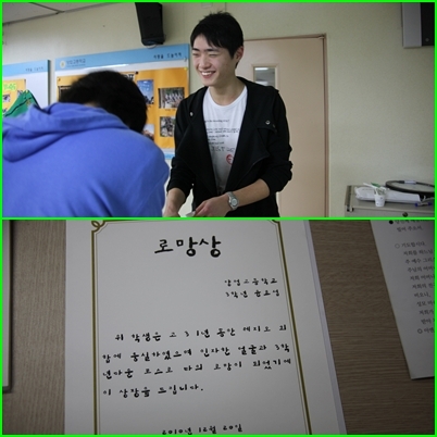 후배들에게 로망이 되어온 3학년 윤오섭 학생이 "로망"상을 받다.