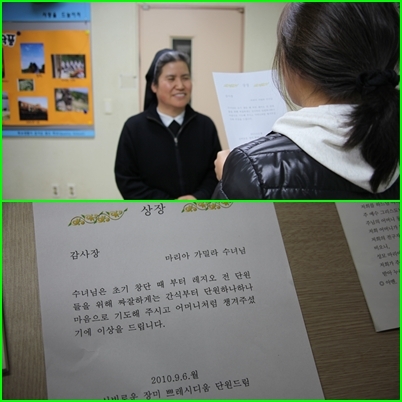 레지오 단원들을 짜잘하게 챙겨준 점이 인정이 되어 감사장을 받다.