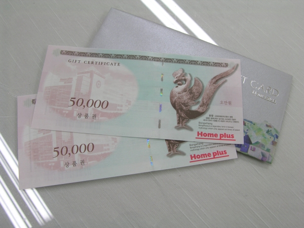 5만원권 2장으로 총 10만원의 상품권을 선물로 드립니다 ^^