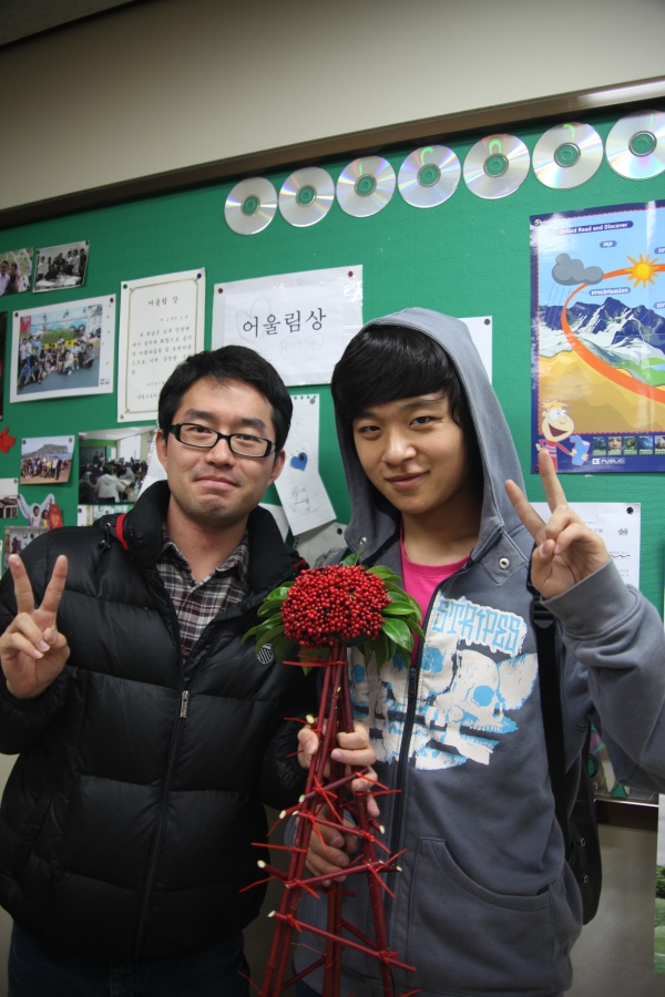 꽃미남 승현이가 원예공예반에서 만든 작품을 생일을 맞이한 송근삼에게 선물~