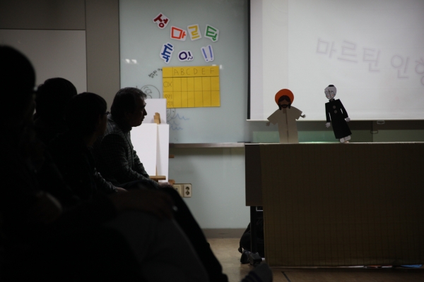 마르틴성인에 대한 인형극을 하고 있어요~