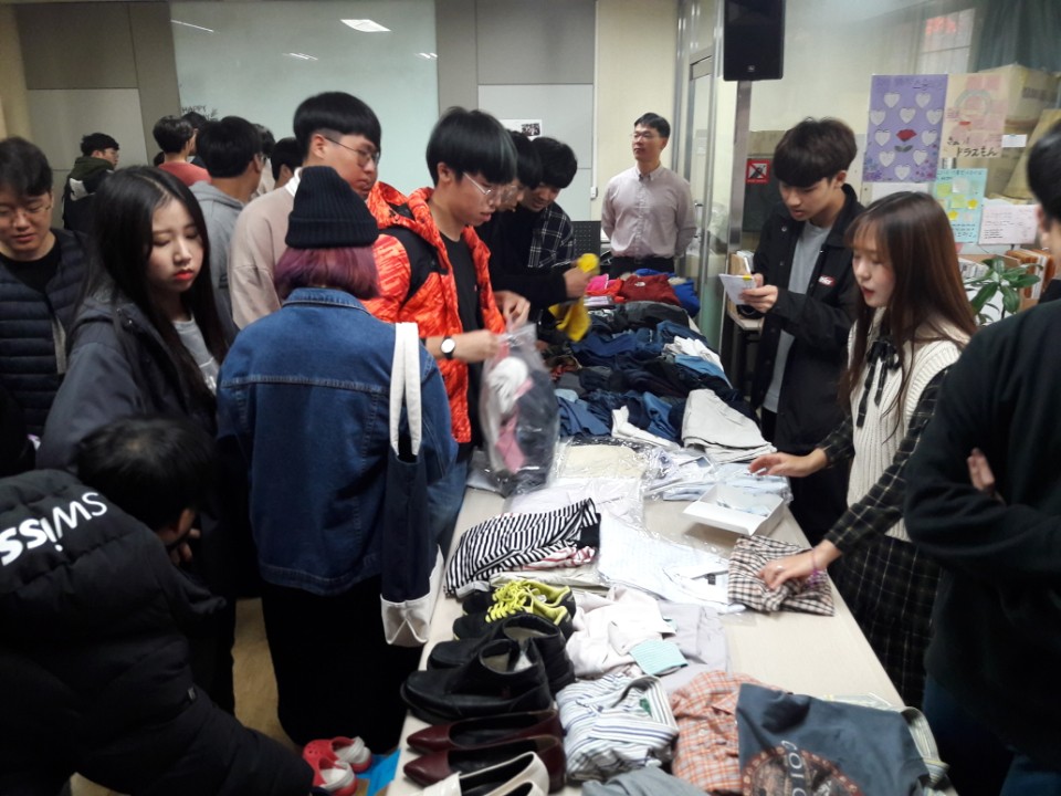 네팔 아동을 돕기 위해, 학교 구성원들이 기부한 물품을 대상으로