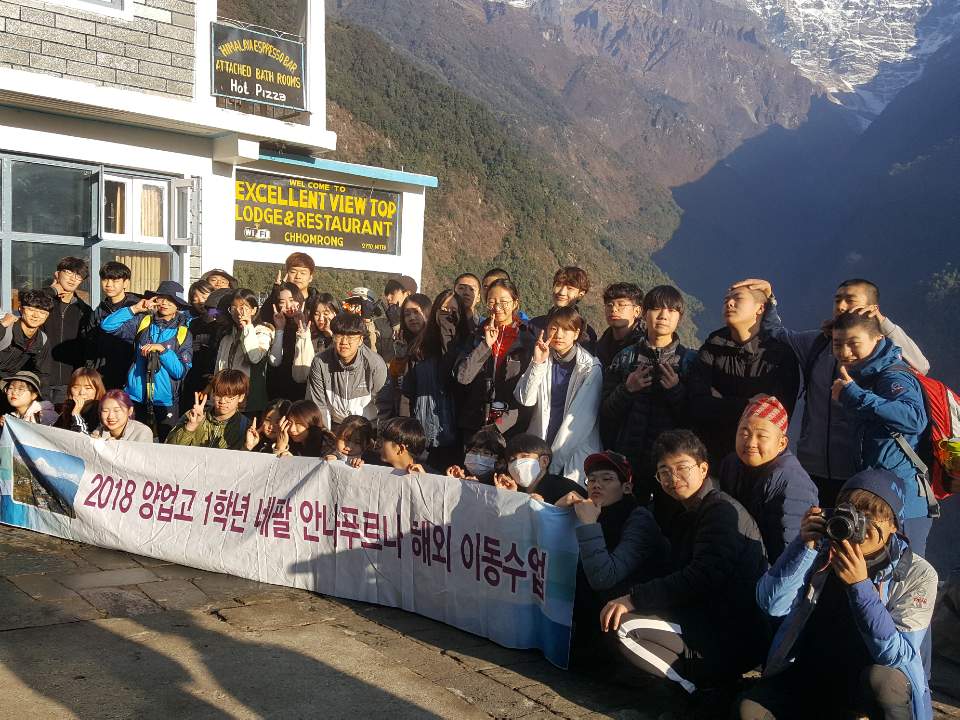 우리 21기 친구들은 네팔이동수업 중 우리학교와 몇년간 결연맺은 '촘롱학교'에 들려, 바자회 기부금으로 구입한 생필품과 문구류를 전달하고 배구경기도 진행했습니다.촘롱학교에서 타다파니에 들렸고, 오늘은 고레파니로 이동합니다.우리 친구들은 네팔에서 밤하늘의 별을 보기위해 새벽같이 일어나고,