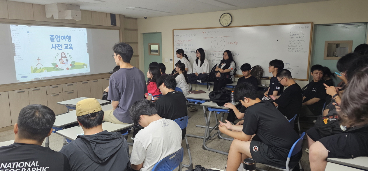 2024학년도 고3 이동수업을 앞두고 3학년 전체가 함께 모여, 이동수업의 학습 목표와 취지를 함께 공부하였습니다. 이번 고3 이동수업을 통해 학교가 지향하는 교육목표가 달성될 수 있도록 학생스스로 콘텐츠를 개발하여 학생들의 의견이 반영된 (현장학습, 산악등반)프로그램을 사전 안내하였습니다.