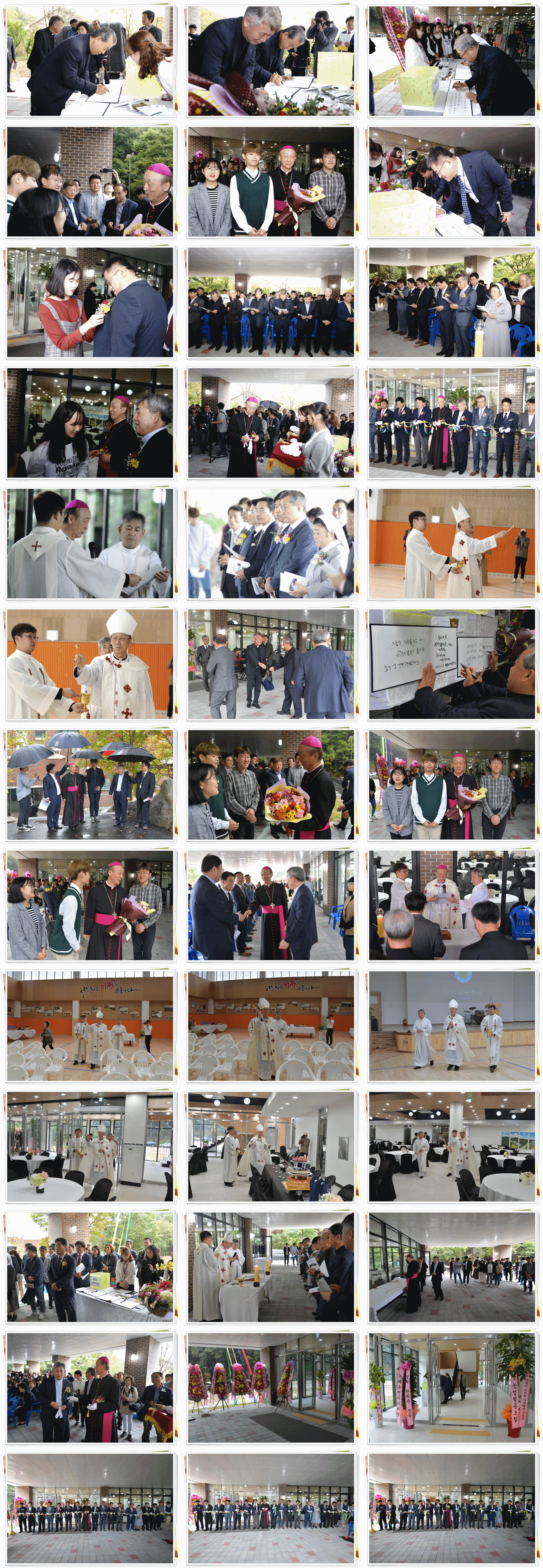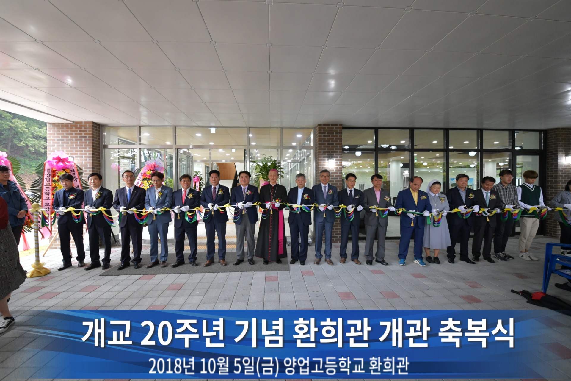 교구장이자 학교이사장님이신 장봉훈 가브리엘 주교님, 한범덕 청주시장님 등 귀빈 분들께서 오셔서 같이 축복해주셨습니다. 주교님께서는 환희관에 대한 성수 축복을 통해 환희관이 더욱 빛나는 교육 효과를 거두기를 기도하였습니다. 축복식을 진행한 후에 테이프 컷팅식이 있었습니다. 함께 해주신 귀빈들께서 앞으로 나와 컷팅식을 시행할 때는 축제의 분위기가 한껏 무르익어 가고 있었습니다. 축복식이 끝난 후 2부 행사로는 20주년 기념 환희관 개관 기념행사를 진행했습니다. 올라가자마자 축하 영상을 시청했습니다. 도종환 문화체육관광부 장관님께서 축하 영상도 보내주셨습니다. 행사는 MC부터 공연까지 학생들이 주도적으로 꾸미고 진행하는 행사였습니다. 2학년 댄스부인 블랙스트로베리, 오케스트라 연주와 성난 바지 밴드부의 공연이 있었습니다. 1학년 전희우 학생은 오케스트라 공연이 인상 깊었다고 했고 20주년 축하를 전했습니다. 2학년 권효인 학생은 2학년 댄스부로서 댄스부 공연이 가장 기억에 남았다고 했고 학교가 20주년인 만큼 20살 다운 학교 되기를 바란다고 했습니다. 3학년 가동우 학생은 다목적 강당실에서 농구를 하고 싶다고 대답하였고 곧 졸업이라서 아쉬운 마음에 개관 시기로 인해 10점 만점에 8점이라고 말했습니다.