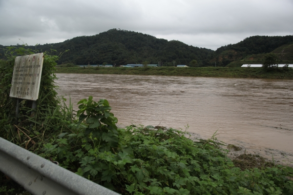 학교앞 천에 물이 넘처나 우리 학생들이 쓰레기를 버리는 철제 쓰레기함이 물에 떠내려 갈 뻔 했어요~