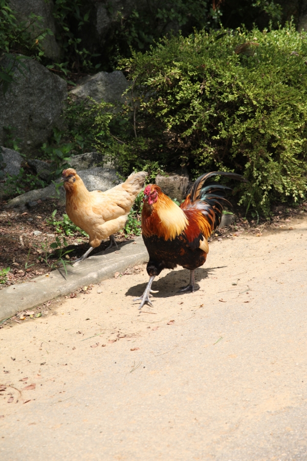 이제는 수탉 1마리와 그뒤를 열심히 따라 댕기는 암탉 1마리만 남았습니다.