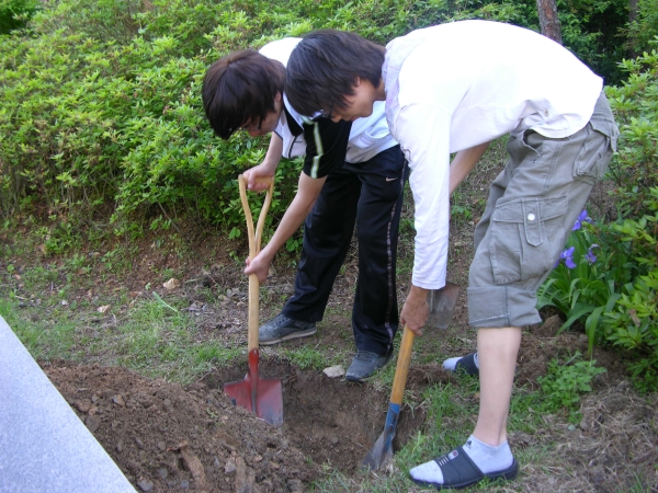 열심히 흙을 파고 있는 2학년학생들~