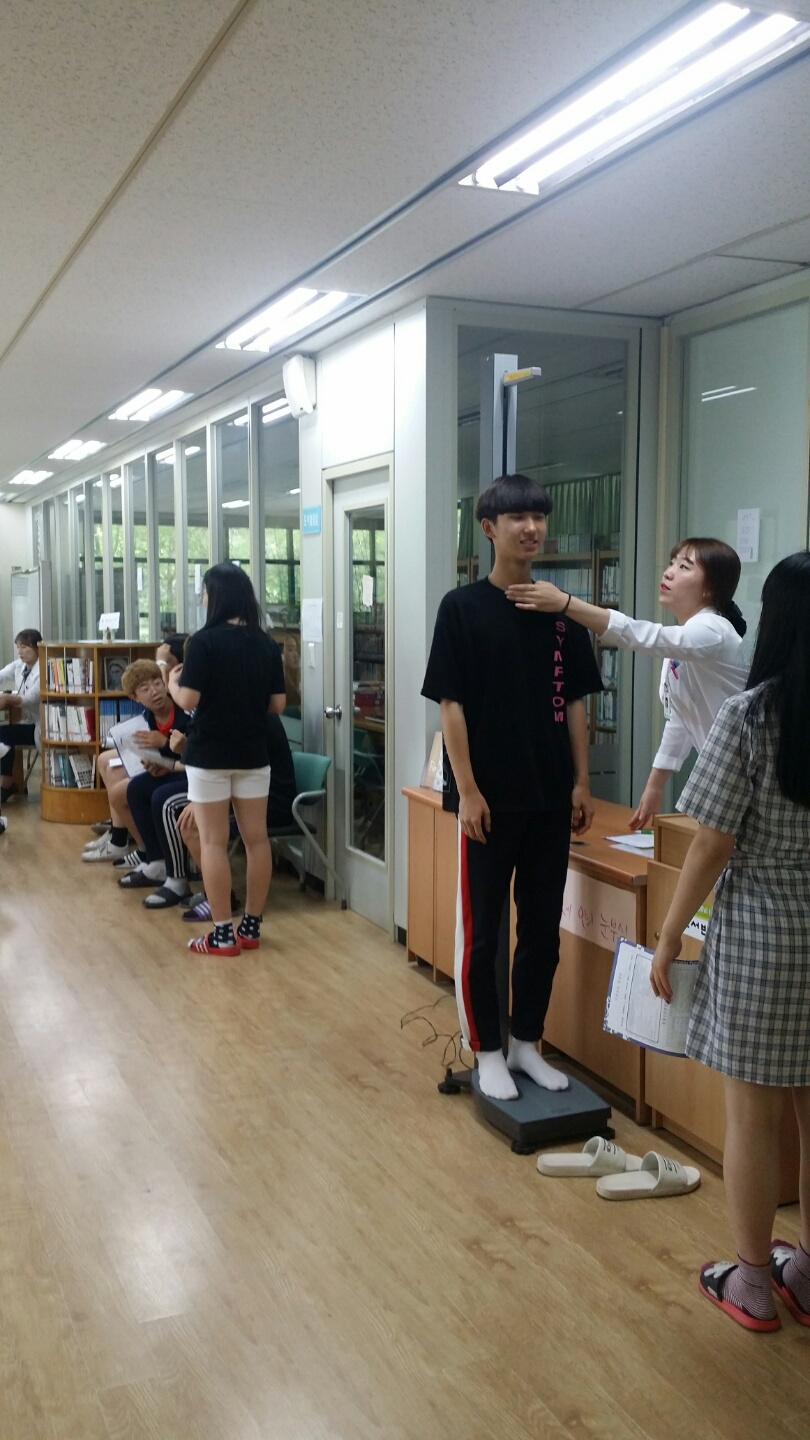 오늘 전교생 건강검진을 실시하였습니다. 청주푸른병원의 출장검진으로 1학년부터 순차적으로 진행되었는데요... 1년 동안 얼마나 컸는지, 체중은 늘었는지 줄었는지... 검사 전부터 팔굽혀 펴기를 하거나 높이뛰기를 하는 재미있는 모습도 눈에 띄었습니다..