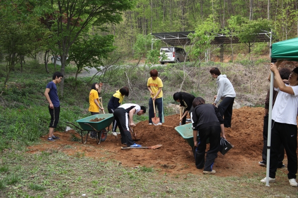 열심히 흙을 퍼다 나르는 이쁜 학생들~