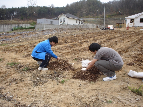 채취한 부엽도를 밭에 뿌리고